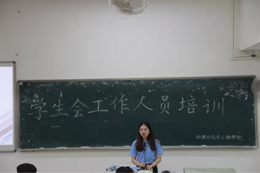 会上,李文峰肯定了团学干部上学期的工作表现,并希望新学期全体团学委员和预备工作人员能够继续发扬踏实努力、奋勇争先的精神,不断改进工作方式方法,更好地为学院师生服务。学生会主席张漫琪强调团学干部要恪守学生干部本分,勤勉务实做事,牢记服务宗旨,永葆理想情怀,积极为学院的各项工作贡献自己的力量,并希望各部门委员积极指导团学的预备工作人员,让他们早日融入物电团学这个大家庭。随后,实践部李杰信、生活维权部吴镇国两位委员相继发言,重点介绍了作为一名团学干部的“任职条件”、“权利与义务”、“责任与担当”,并以自身经验指导团学的预备工作人员如何平衡好学习与工作之间的关系。