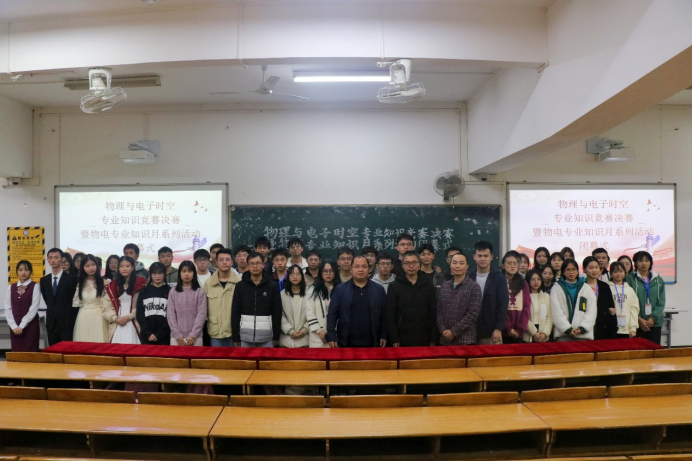 12月5日晚,我院在公颜实训大楼B402举办了以“浓郁学院学术氛围,提升学生科技素质”为主题的物理与电子时空专业知识竞赛决赛暨物电专业知识月系列活动闭幕式。我院王小增院长、黄杰贤副院长、辅导员、团学干部及学生共150多人参加了此次活动。