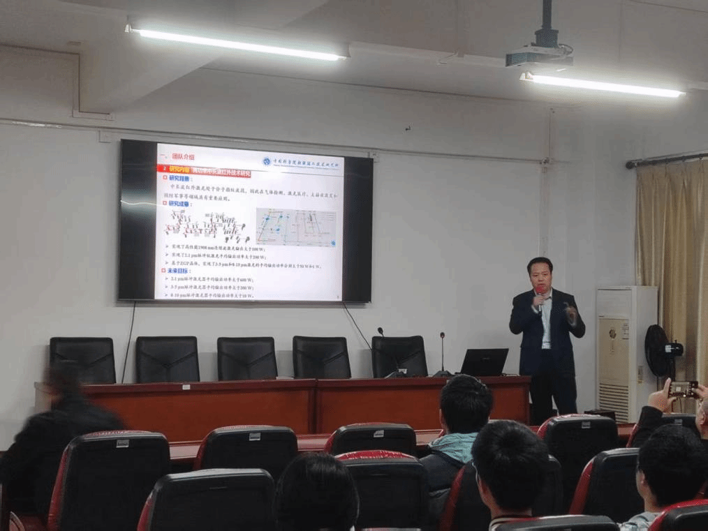 讲座中,李林军研究员系统介绍了2微米波段脉冲固体激光器在工业、农业、精密测量、通信、信息处理、医疗及军事等领域的广泛应用,重点讲解了自调Q技术在Tm/Ho脉冲激光器中的研究进展。本次讲座内容与光电信息科学与工程专业的核心课程与研究方向高度契合,尤其在激光原理、光电子技术、光电系统设计等方面提供了前沿案例与深入拓展,为学生理解光电技术在实际科研与工程中的应用提供了生动素材,也为专业教学与科研融合提供了宝贵参考。