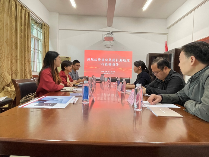 2023年3月17日,广东宏伙控股集团有限公司到我院进行产学研合作交流,宏伙控股集团人事部经理杜勤、我院党委书记张小琏、副教授陈书汉、博士教师邓定南等参加本次会议。
