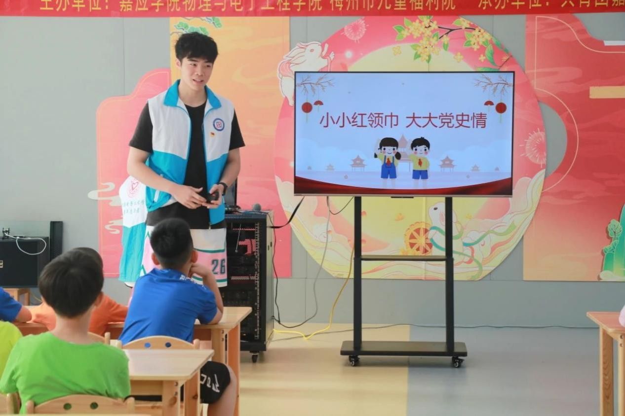 为了传承和发扬雷锋精神,培养孩子们的科学兴趣,促进红色文化的传播,4月4日上午,在我院团委书记的带领下,由23名青年大学生组成的志愿者服务队奔赴梅州市儿童福利院开展义教活动。