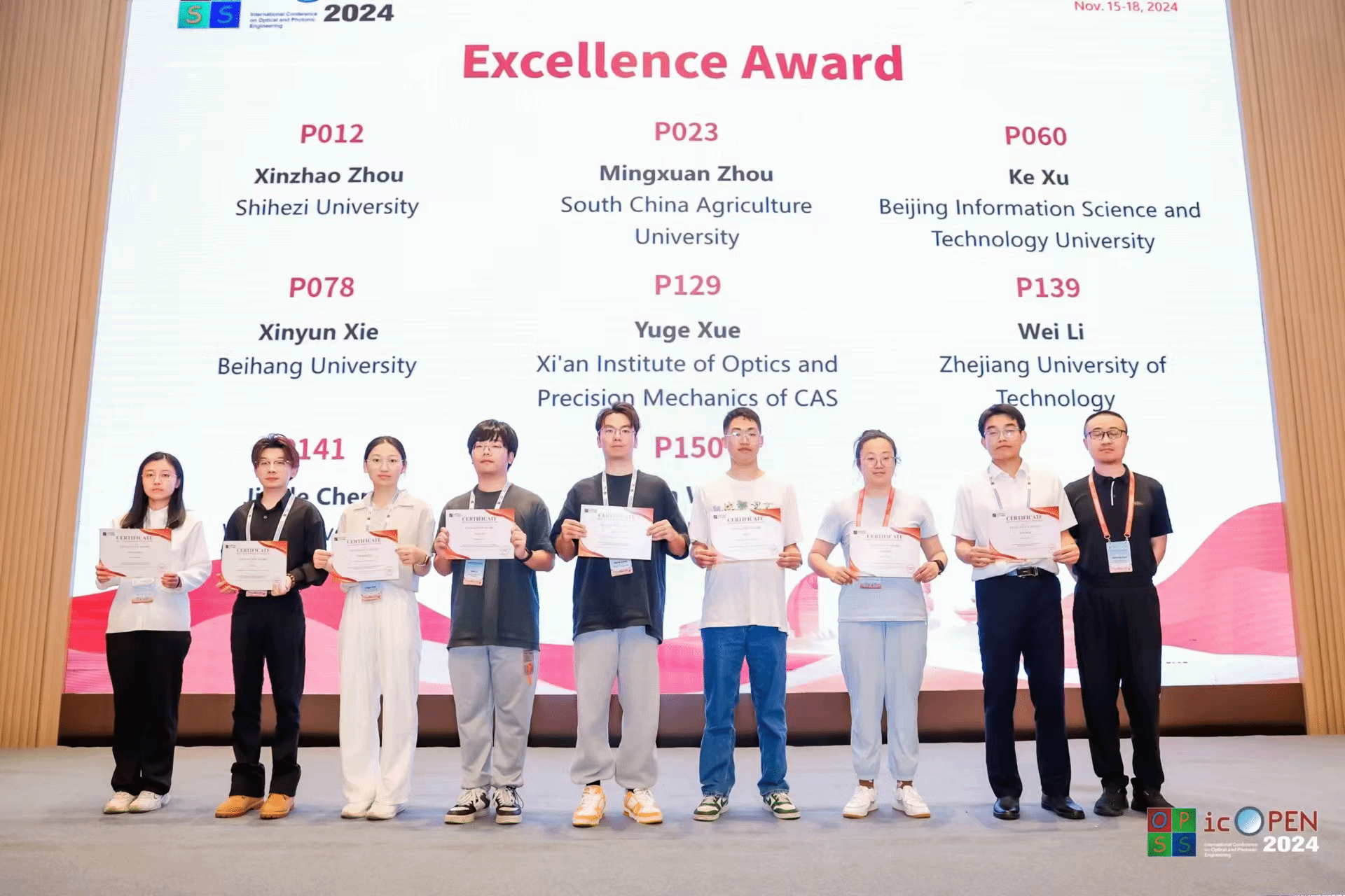 此次2024年光子与光学工程国际会议(icOPEN 2024)的成功举办,不仅彰显了我国在光子与光学工程领域的强大科研实力和创新能力,也为全球同行搭建了一个开放共享、互利共赢的合作平台,对于推动国际科技合作、加速技术创新与应用具有重要意义。我院代表团的成功参与,不仅是对学院科研与教学水平的肯定,更是激励我们继续努力,培养更多具有国际视野和创新能力的高素质人才,为光子与光学工程领域的未来发展贡献更大力量。