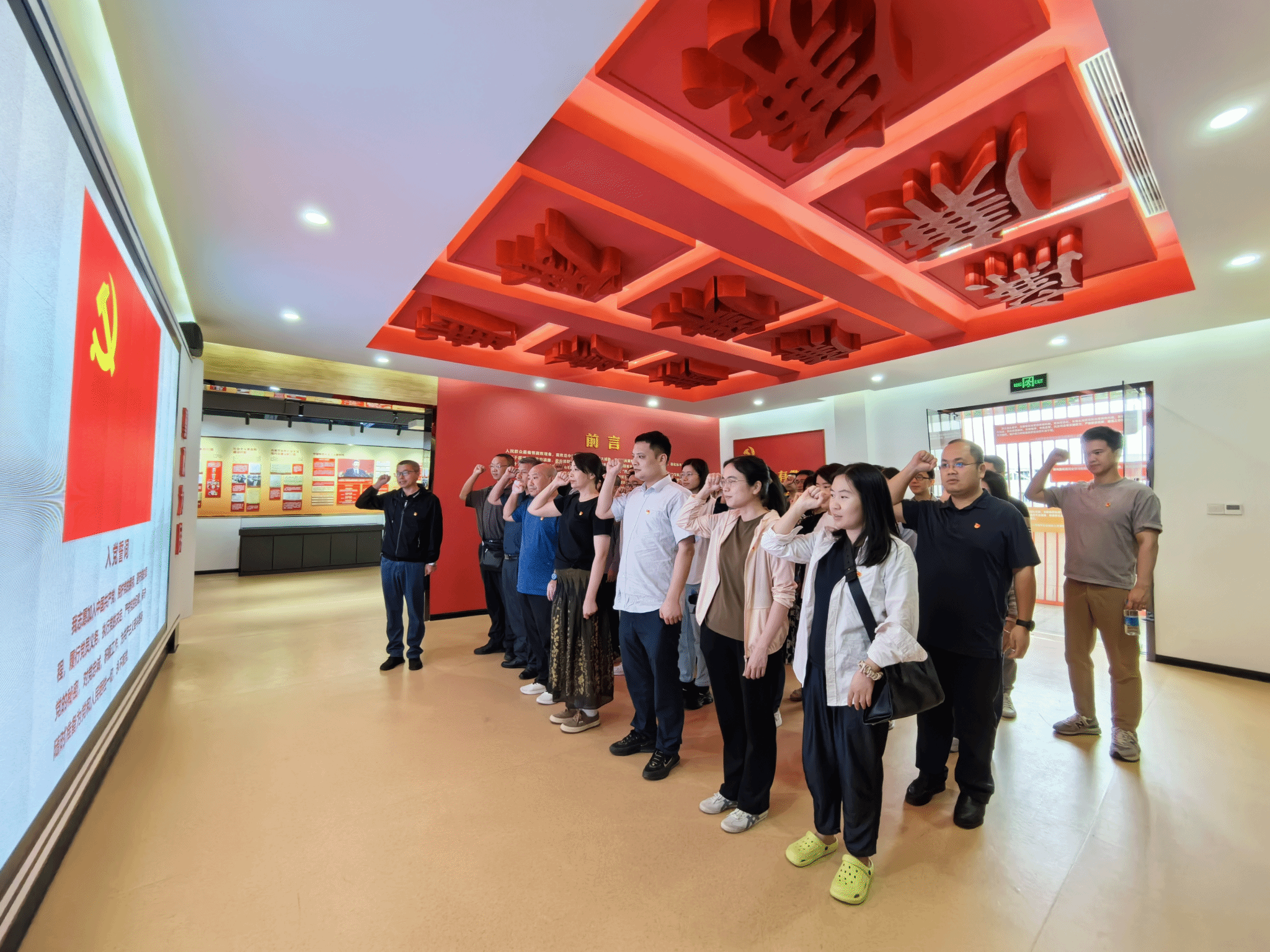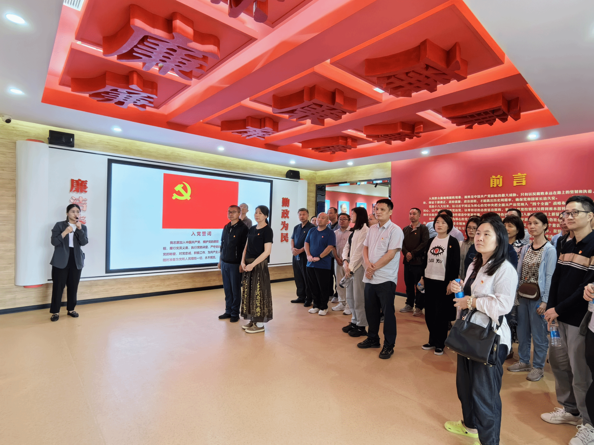 教工党员观看了“政治引领从严治党”“正风反腐警钟长鸣”“家风滋养勤廉楷模”等3个主题展区,展厅通过图片展示、视频影像、全息成像等形式,“沉浸式”展示了梅县区廉政文化历史和革命先驱的廉洁故事,剖析了梅县区党员干部违纪违法犯罪的典型案例,充分发挥以“身边人”“身边事”教育“身边人”的震慑警醒作用。在宣誓厅,全体党员面对党旗,重温入党誓词,回顾入党初心,坚定永葆清正廉洁的使命担当。