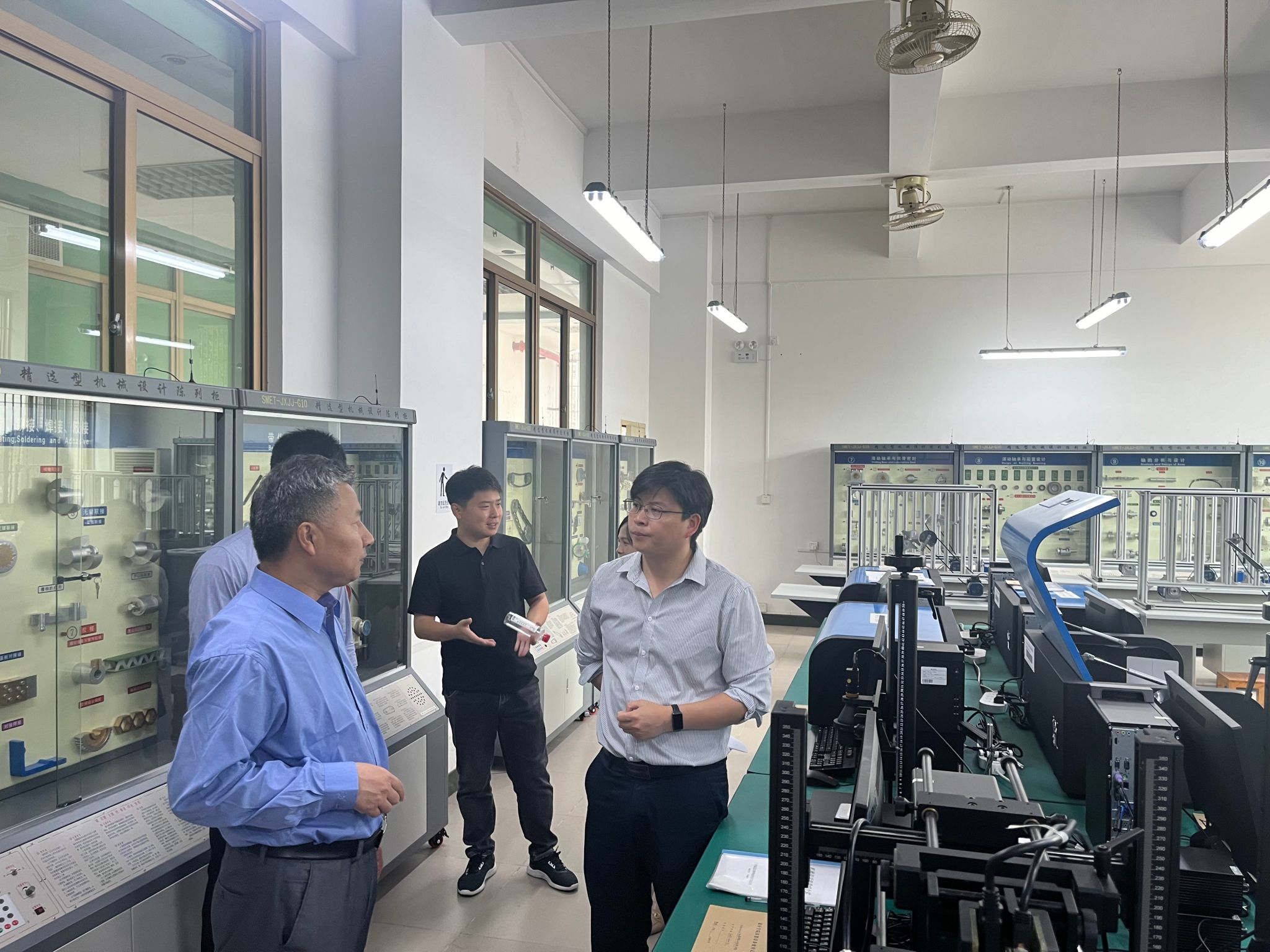 随后,张波一行参观了校史馆和实验室,对学校的办学历史和科研设施给予了高度评价。在参观实验室期间,代表团与刘元林就实验课程和科研方向展开了深入交流,共同探讨了未来合作的可能性和方向。